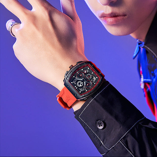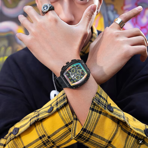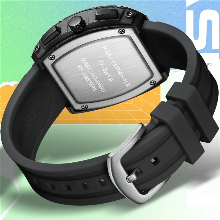 - Materiale orologio: Cassa in acciaio e resina, cinturino in silicone.